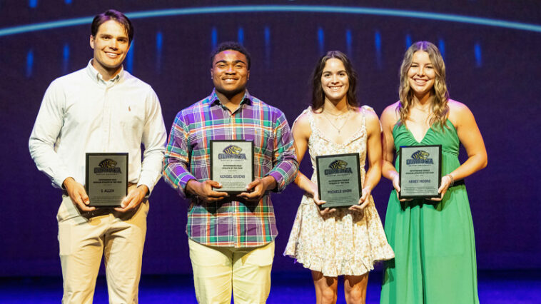 Photo caption: Ouachita’s Athletes and Scholar Athletes of the Year for 2023-24. From left to right: G. Allen, Kendel Givens, Michele Snow, and Abbey Moore. Photo by Dr. Wesley Kluck.
