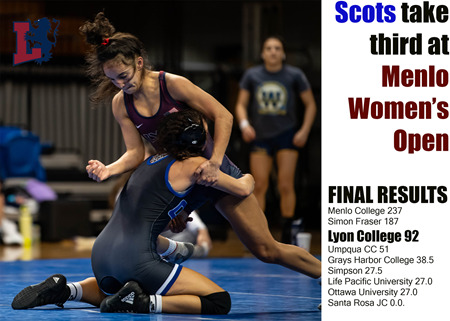 ATHERTON, CA – Lyon’s Kasisdy Ramirez narrowly lost to Angela Cervantes of Life Pacific University 16-12 in the opening round of the 101-weight class at the Menlo Women’s Open on Saturday. Ramirez went on to win third place in the weight class by defeating Kaili Oshiro by technical fall 10-0.