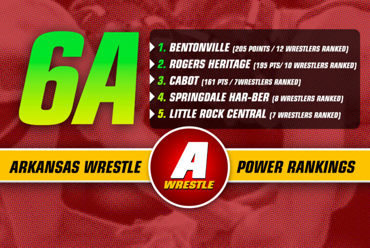 Hi, Hello, how are you? Here we go with the first ever Arkansas Wrestle 6A Rankings. Coming hot off the 2020-2021 team championship, Bentonville reloads and is ready to make another run at the 2021-22 championship with 12 wrestlers ranked bringing in a projected team total of 205 points.